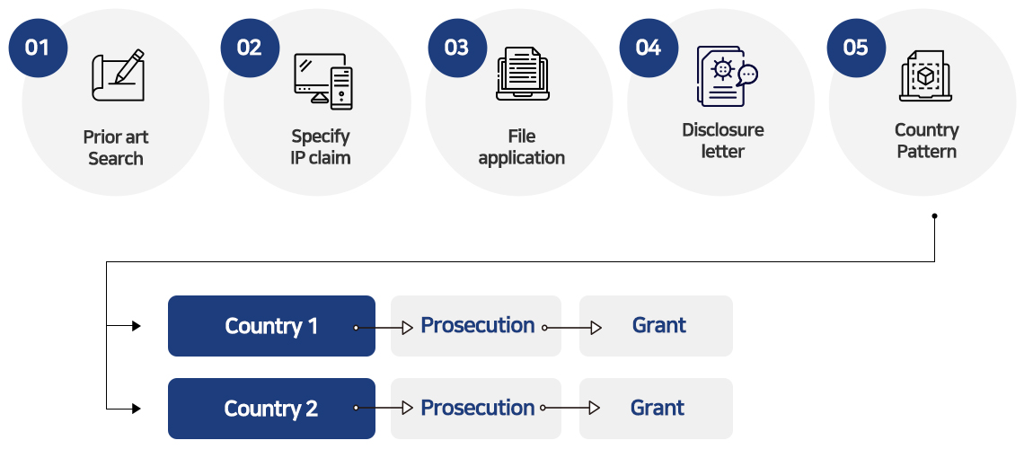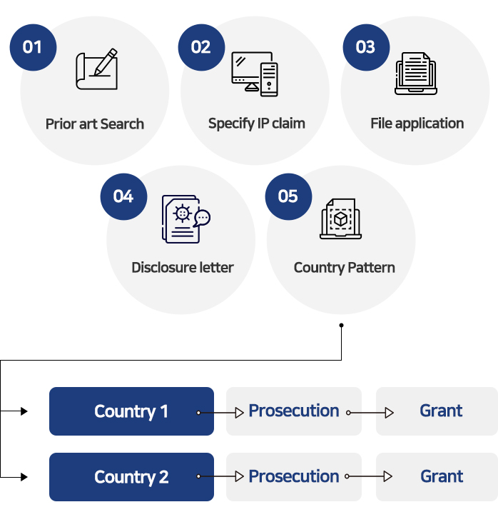 Gathering IP of new kind of product by simultaneoulsy working on R&D process and IP process.